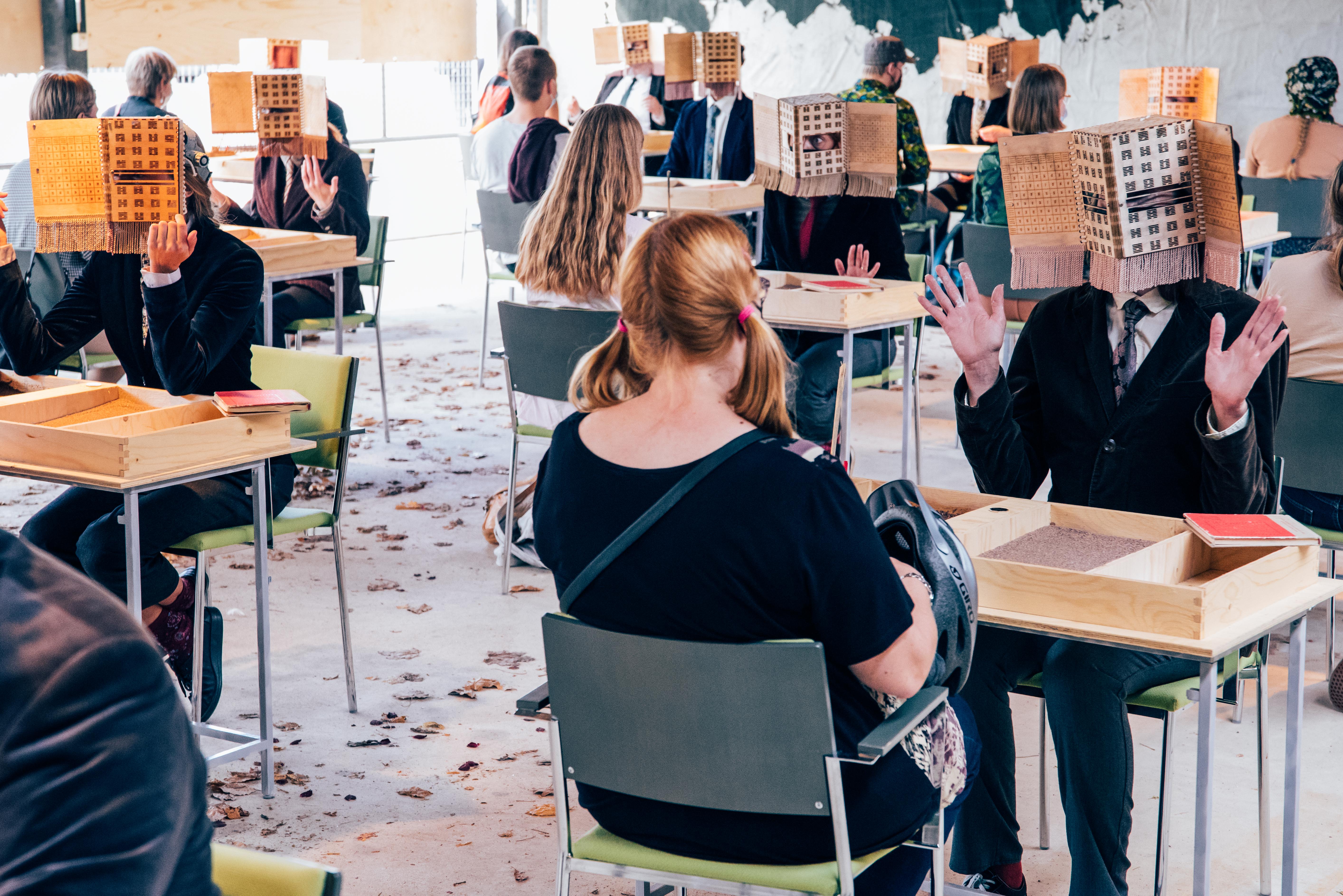 A group of one hundred artists transforms an empty building and its surroundings into a multidisciplinary performance and art installation. The voluminous piece is filled with poetry, theatre, puppetry, dance, music and visual arts. It is an immersive multi-sensory experience one steps into.