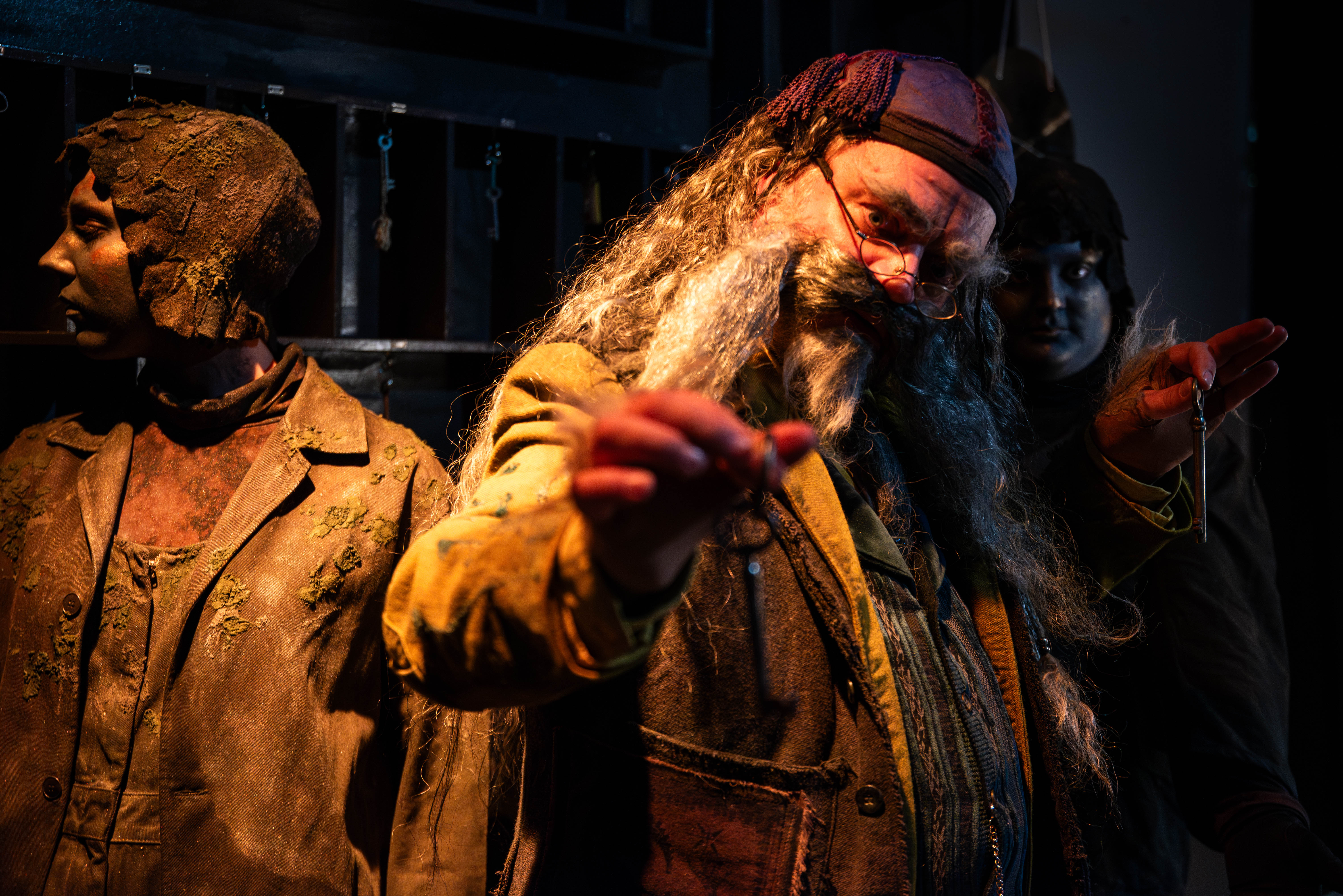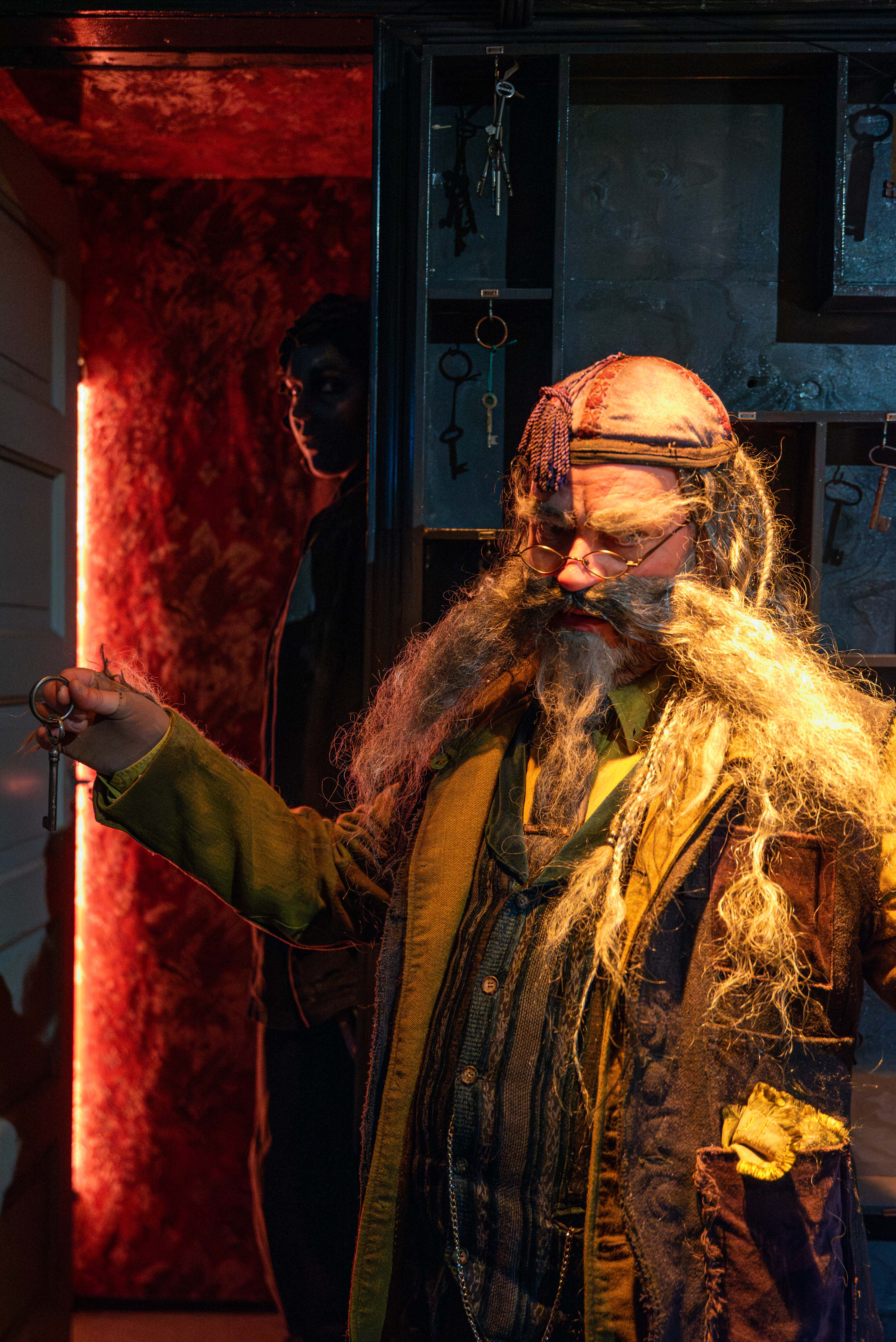 Kuva Jesper Dolgov. Kuvassa Alma Rajala Morri Collianderina, takana Reetta Niemelä majatalon patsaana