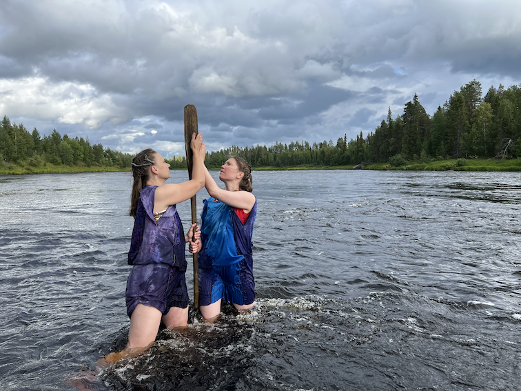 So far we have created dance performances in Ounas river, at the Silence residency (2023) run by the artists' organisation Silence and in Aura River, where Uoma was part of the Manifesti Festival (2023).